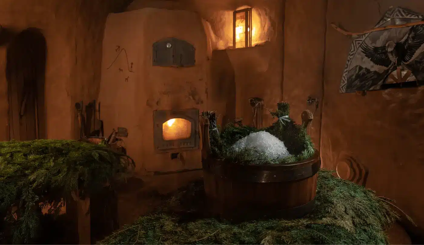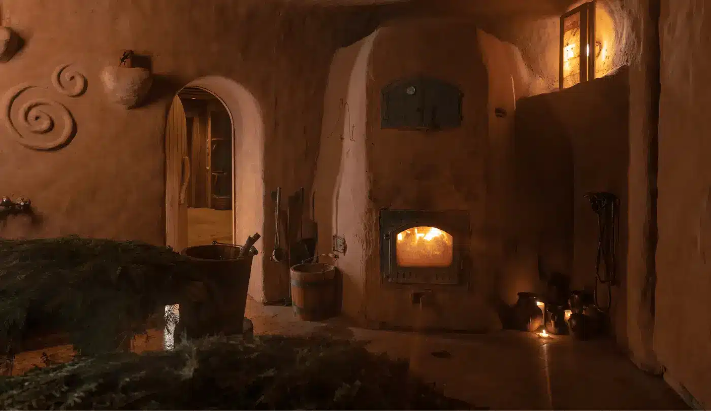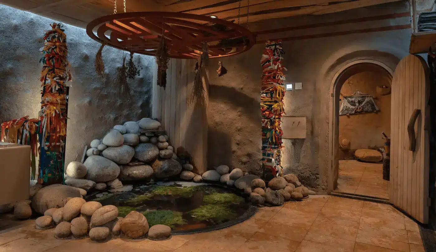 Глиняная парная без острых углов создаёт особую атмосферу и энергетику. Вам не обязательно ехать на Ольхон, чтобы погрузиться в шаманскую атмосферу, услышать озеро Байкал и пройти ритуал парения от шамана острова — это можно сделать у нас